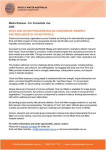 Rock and Water Australia Media Release